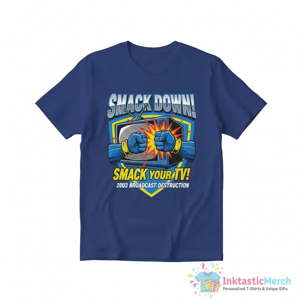 Bring your style to life with the 2003 WWE SmackDown Smack your TV shirt today!