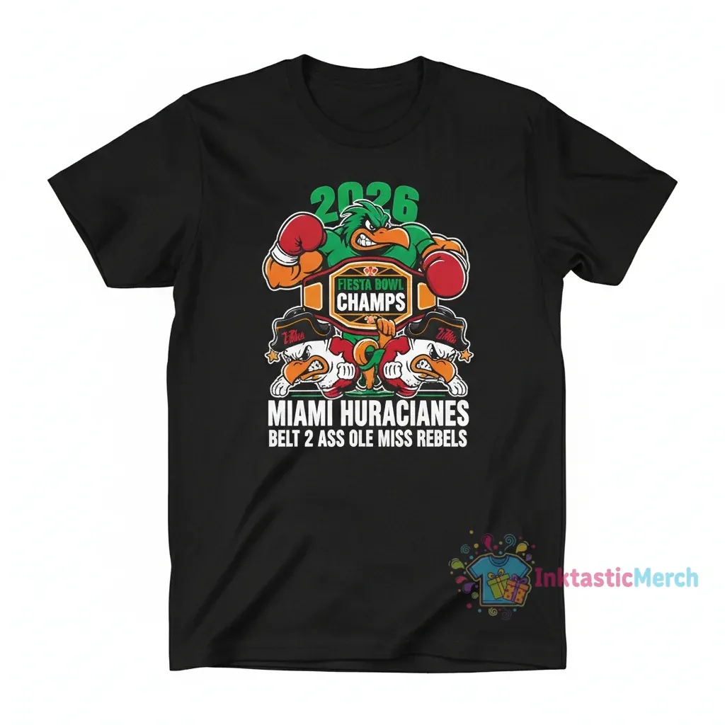 Celebrate the 2026 Fiesta Bowl Champions with this exclusive tee featuring bold Miami Hurricanes and Ole Miss Rebels mascot graphics. Crafted from a high-quality, breathable cotton blend for unmatched softness and durability, this shirt from InktasticMerch is designed for those who appreciate the intersection of sport and style.