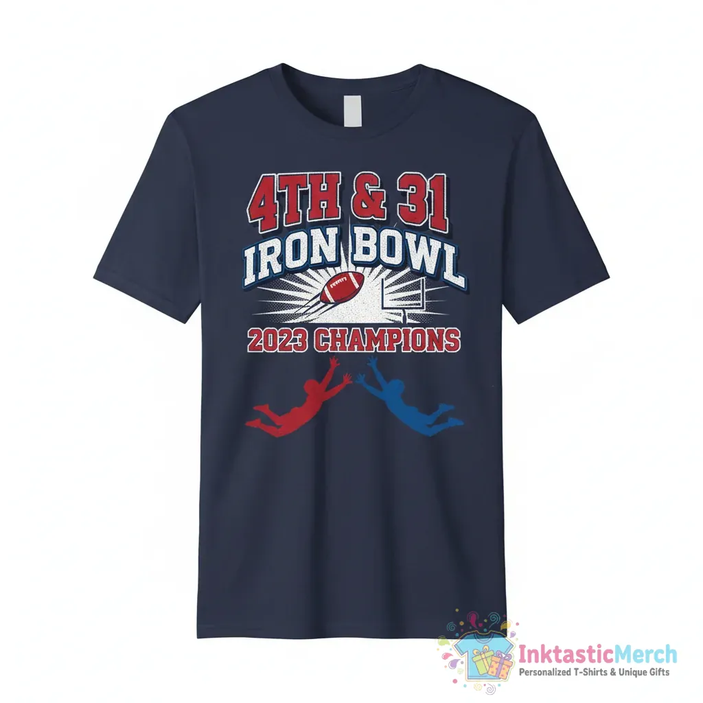 Celebrate the epic clash of titans with the 4th & 31 Iron Bowl 2023 Classic T-Shirt. This shirt captures the unforgettable moment from the 2023 Iron Bowl, a must-have for any true football fan. Designed to commemorate one of the most thrilling games, this tee lets you wear your pride and relive the excitement. It’s more than just a shirt; it’s a piece of football history you can own.