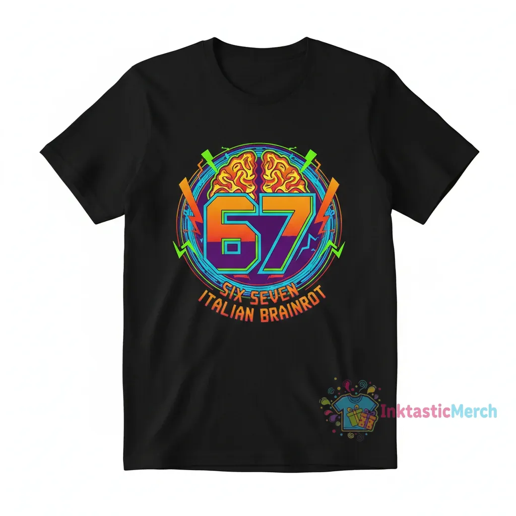 The 67 Meme Six Seven tee brings a fresh wave of Italian brainrot cool to your wardrobe, embodying the laid-back confidence of modern streetwear. Crafted from premium, ultra-soft fabric, this tee offers an unparalleled feel against your skin, ensuring a drape that’s both comfortable and effortlessly stylish for all-day vibes. Discover more unique pieces at inktasticmerch.com.