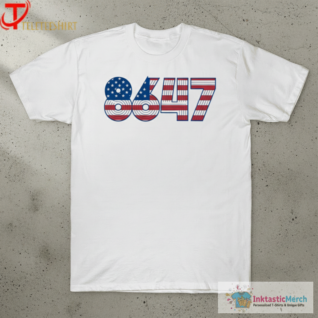 Show your true colors with the 8647 Anti Trump American Flag T-Shirt, designed for comfort and durability. This tee features a bold graphic that stands out, perfect for everyday wear or rallies, letting you wear your beliefs with pride from inktasticmerch.com.
