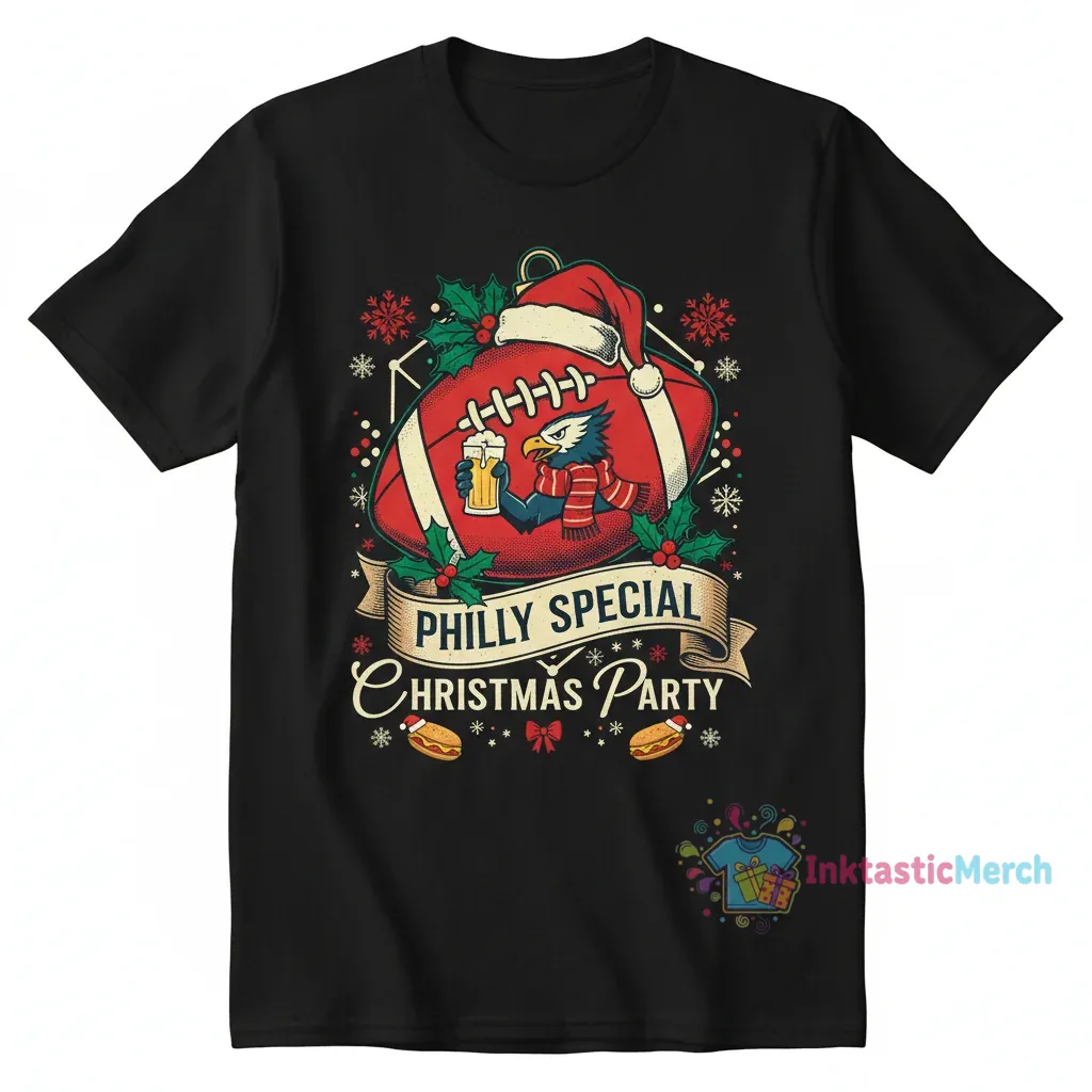 This Philly Special Christmas Party shirt from InktasticMerch is a wearable tribute to joy and togetherness, designed with exclusive original artwork and crafted from super-soft, premium fabric for unparalleled comfort. Its durable construction and ethically sourced materials ensure it will be a cherished piece through countless festive seasons.
