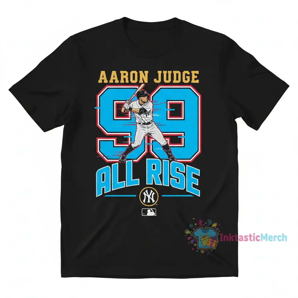 Show your unwavering support for the New York Yankees and the legendary Aaron Judge with the ‘All Rise 99’ T-Shirt, crafted from 100% premium, pre-shrunk cotton for lasting comfort and a perfect fit. Engineered for maximum comfort and durability with vibrant, eco-friendly inks that resist fading, this tee is designed to keep you looking sharp game after game. Discover more quality fan apparel at inktasticmerch.com.