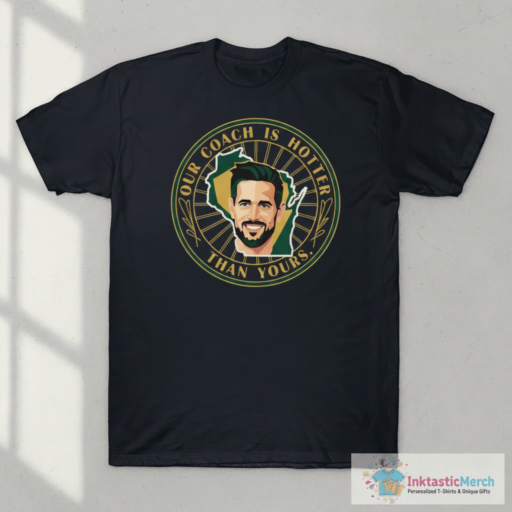 Show your unwavering support and sense of humor with the Aaron Rodgers “Our Coach is Hotter Than Yours” T-shirt from InktasticMerch. Designed for ultimate comfort and style with its ultra-soft, premium cotton blend, this shirt is a must-have for any dedicated Packers fan, printed on durable material that lasts.