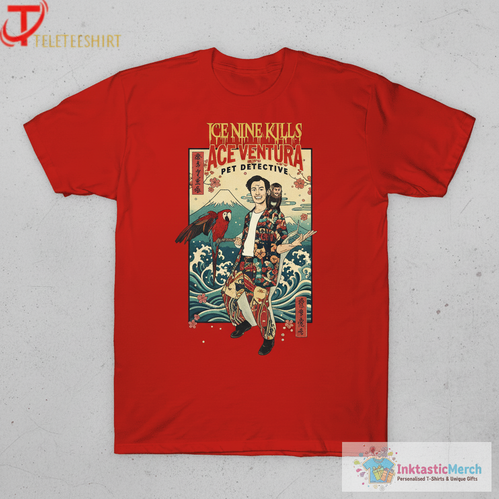 Show off your love for iconic movie moments and killer tunes with the Ace Ventura Pet Detective Parrot Monkey Ice Nine Kills T-Shirt from InktasticMerch. Crafted from super-soft, high-quality fabric, this tee offers maximum comfort and durability, making it a statement piece perfect for fans of both Ace Ventura and Ice Nine Kills.