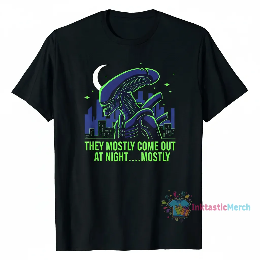 This essential T-shirt from InktasticMerch features the iconic “Aliens Quote – They Mostly Come Out At Night….Mostly,” crafted from incredibly soft, breathable fabric for all-day comfort. It’s designed to be wearable creativity, blending artistic expression with unparalleled ease, making it a perfect statement piece for fans.
