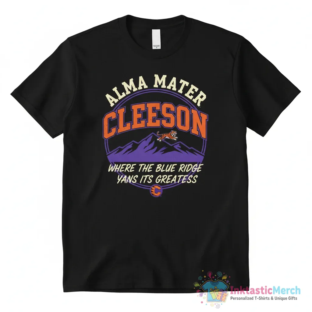 Show your Clemson Tigers pride with the Alma Mater Clemson Tigers where the blue ridge yawns its greatness shirt from InktasticMerch. This premium quality tee is crafted from soft, comfortable, and breathable fabric, offering incredible comfort and lasting wear. Its unique design blends classic style with your passion for Clemson, making it a statement of belonging perfect for any devoted fan.