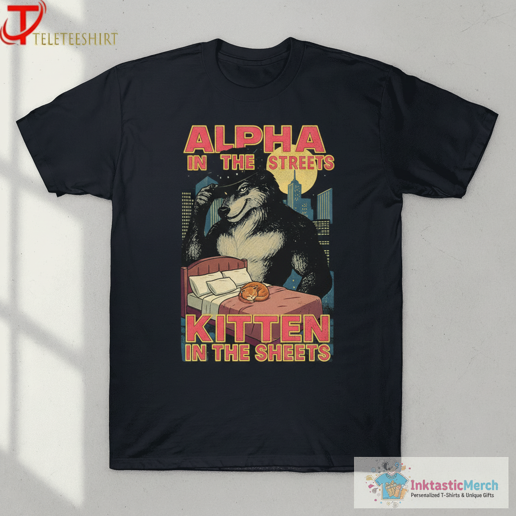 Bring your style to life with the Alpha In The Streets Kitten In The Sheets Wolf T-shirt today!