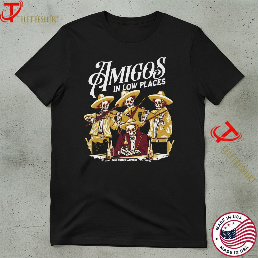 Bring your style to life with the Amigos In Low Places Skeleton T-shirt today!