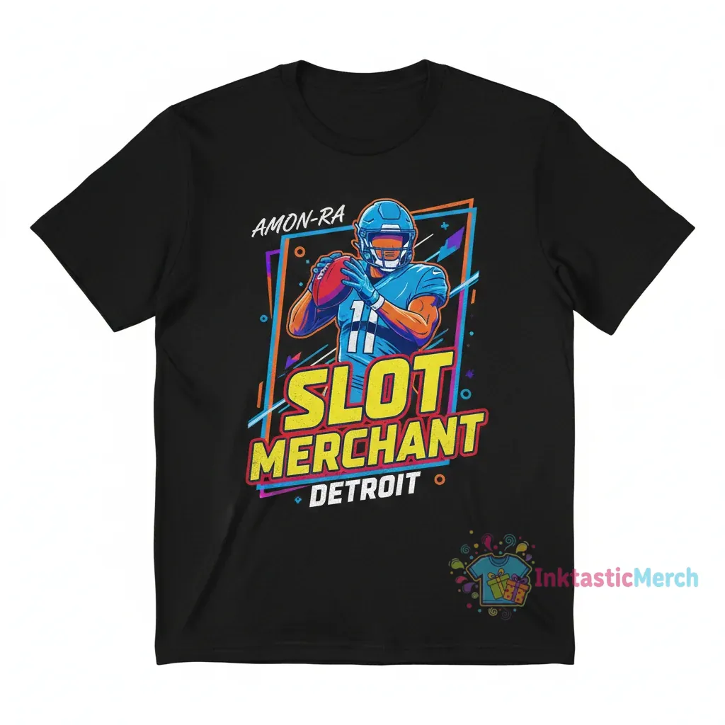 Experience the ultimate blend of iconic sports flair and streetwear cool with the Amon-Ra St. Brown Slot Merchant Detroit signature tee from InktasticMerch. Crafted from premium, ultra-soft fabric, this tee offers unmatched comfort and a luxurious feel, making it perfect for all-day wear and effortless style.