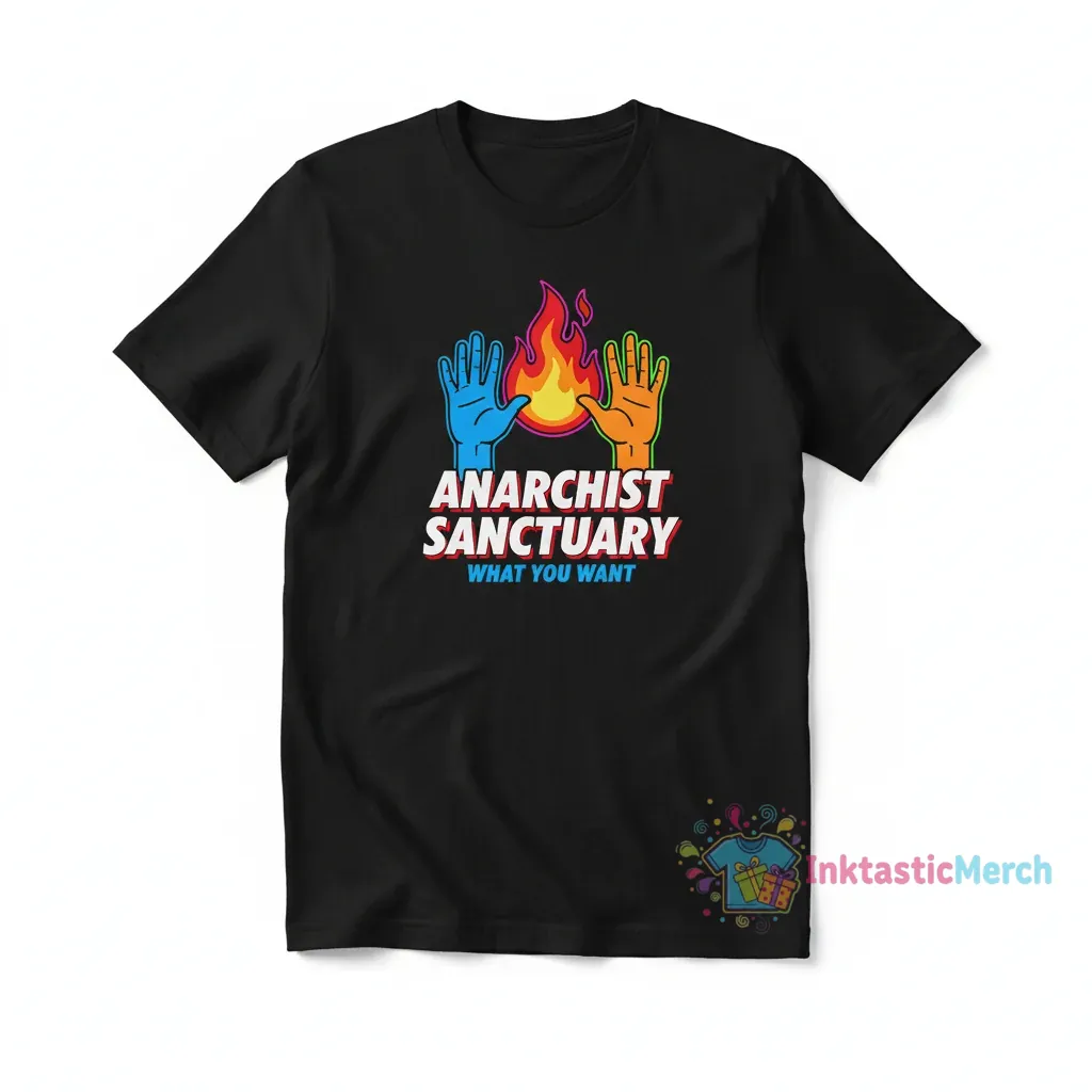 The Anarchist Sanctuary ‘What You Want’ tee is your go-to for any situation. Its durable construction and timeless design make it perfect for casual outings, political rallies, artistic endeavors, or simply making a bold statement in your daily life. Pair it with your favorite jeans, layer it under a jacket, or wear it solo – this versatile tee is designed to be as adaptable as your spirit. Don’t just wear a t-shirt, wear your conviction. Grab your ‘What You Want’ tee today and let your style speak volumes!