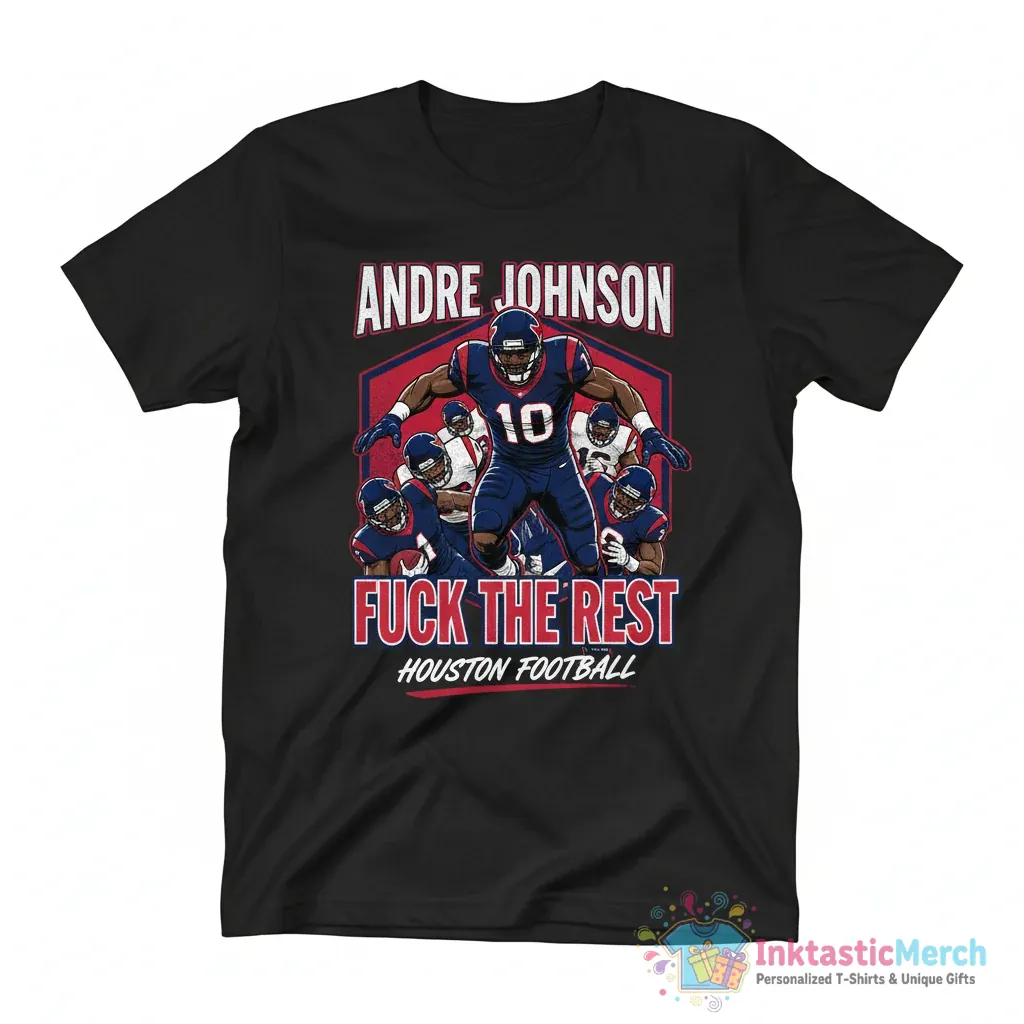 Show your team spirit with the Andre Johnson “Fuck the Rest” Houston Texans T-shirt, crafted with high-quality materials for ultimate comfort and durability. This statement piece from InktasticMerch features a striking graphic designed to celebrate a legendary player and bold attitude, ensuring you can wear your pride season after season.