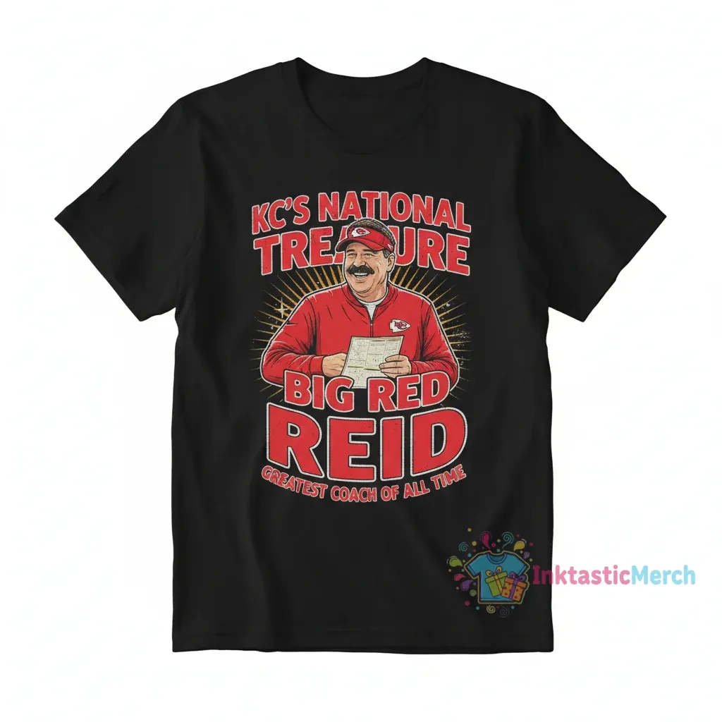 - High-Quality Print: Features vibrant, durable graphics that showcase the “Andy Reid Big Red KC’s National Treasure Greatest Coach of All Time” design.