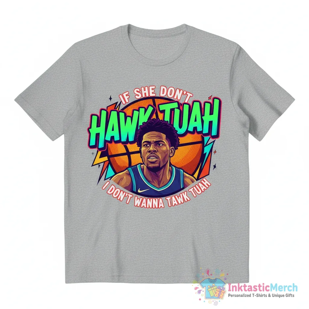 Bring your style to life with the Anthony Edwards if she don’t hawk tuah I don’t wanna tawk tuah shirt today!