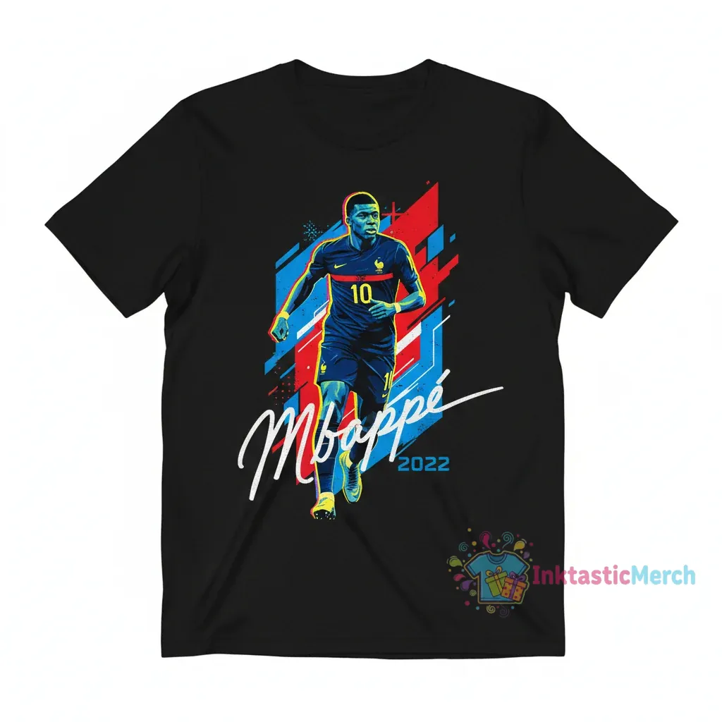 Nâng tầm phong cách của bạn với chiếc áo đấu World Cup 2022 Pháp phiên bản signature của Kylian Mbappé, được thiết kế để mang lại sự thoải mái tối đa và vẻ ngoài ấn tượng. Chiếc áo này, chế tạo từ chất liệu vải cao cấp đã qua xử lý co ngót và công nghệ in mực siêu bền màu từ InktasticMerch, đảm bảo giữ nguyên form dáng hoàn hảo và hình ảnh sắc nét, sống động theo thời gian.