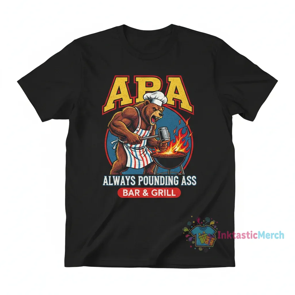 This Apa always pounding ass bar & grill shirt is expertly designed for comfort, style, and durability, making it a standout piece for any casual wardrobe. Crafted with high-quality materials and a focus on superior construction, this graphic tee is perfect for expressing your unique sense of humor and love for your favorite establishment. Its eye-catching design ensures you’ll turn heads while enjoying a relaxed and comfortable fit, ideal for everyday wear, social gatherings, or sporting events. This shirt embodies a blend of playful irreverence and classic graphic tee appeal.
