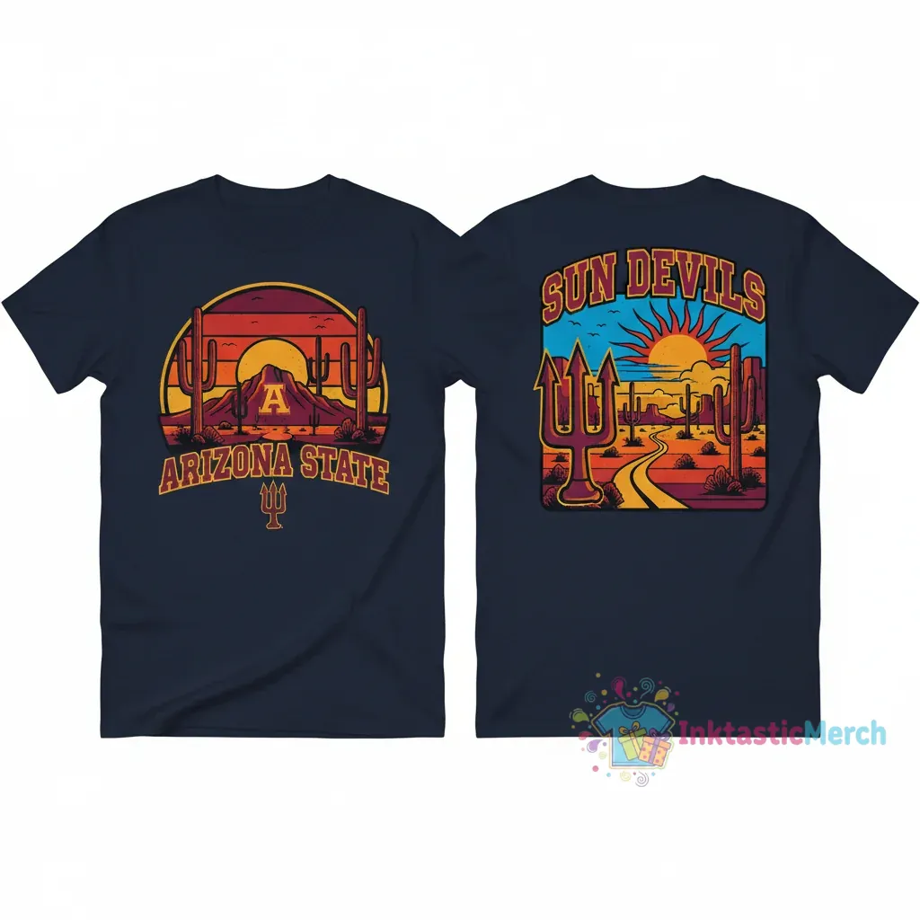 This Arizona State Sun Devils Thick Lined Landscape 2-Sided T-Shirt is a premium apparel choice for any devoted fan, offering vibrant, detailed graphics on both the front and back for a unique way to represent your team spirit. Designed for comfort and longevity with 100% ring-spun cotton and side-seamed construction for a tailored fit, this shirt stands out to showcase your unwavering support. Discover more from InktasticMerch.