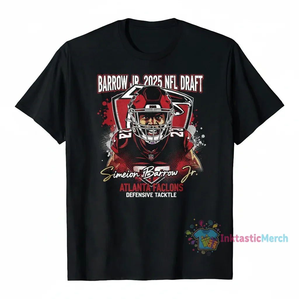 Show your unwavering support for the Atlanta Falcons and the electrifying talent of Simeon Barrow Jr. with this exclusive 2025 NFL Draft Signature T-Shirt. Designed for the true fan, this tee is more than just apparel; it’s a statement of your passion and a keepsake from a pivotal moment in Falcons history. Don’t miss out on owning a piece of the future – grab yours today and celebrate every touchdown and every victory in style.