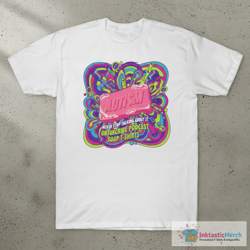 Show your support and spread awareness with the Autism Never Stop Talking About It Unsubscribe Podcast T-shirt, a statement piece designed for everyday wear and comfort. This tee lets you proudly wear your advocacy with a unique design inspired by the podcast, ensuring you can make a difference while looking great. Explore more impactful designs that spark conversations at inktasticmerch.com/trending/.