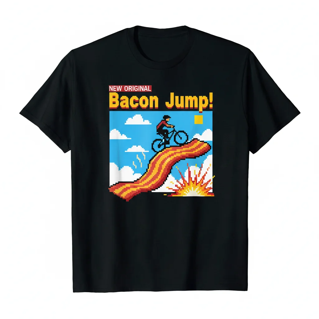 Experience the “Bacon Jump!” with this premium art tee from InktasticMerch, featuring original, hand-drawn artwork designed to spark joy. Crafted from buttery soft, ringspun cotton with a durable print and a comfortable, unisex fit, this tee offers unmatched comfort and expressive style for your everyday adventures.