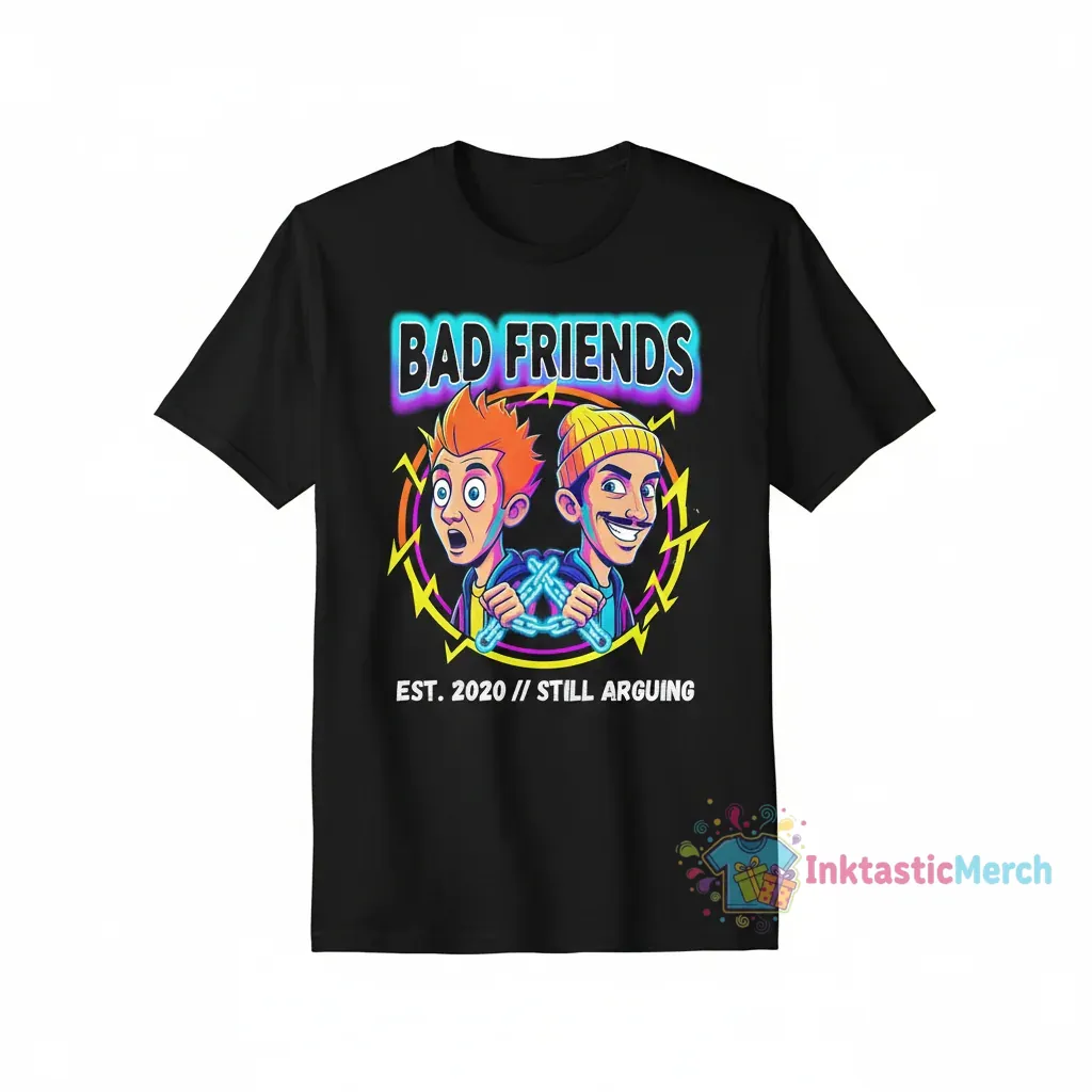 Embrace your favorite podcast with this durable and comfortable Bad Friends tee, and be sure to explore more must-have fan apparel in our Trending collection.