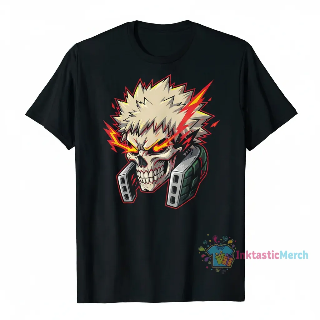 Ready to amp up your style game? Discover more electrifying pieces like this Bakugou Katsuki Skull Shirt in our Trending collection.