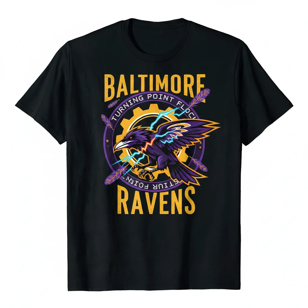 - Unique Artwork & Design: Features a distinctive graphic combining Baltimore Ravens branding with Charlie Kirk and Turning Point USA elements, creating a shirt that truly stands out.