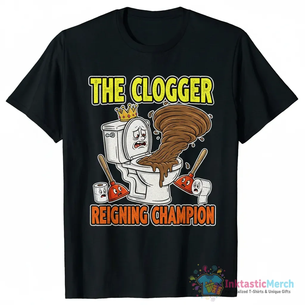 Unleash your inner plumbing pro with the hilarious Bathroom Toilet Clogging Champion Meme Shirt from InktasticMerch. Made with top-notch materials, this tee is designed for both comfort and durability, ensuring you look and feel great. Its ultra-soft, premium quality fabric and durable construction mean it will become a long-lasting favorite, perfect for anyone who loves a good meme and a bit of lighthearted fun.