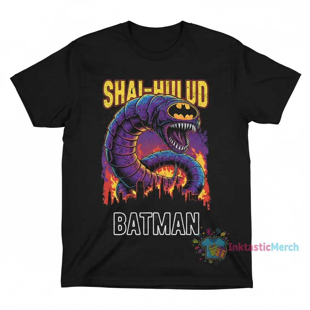 This Batman Shai Hulud shirt is ideal for comic book fans, sci-fi geeks, movie buffs, and anyone who appreciates creative and bold graphic tees. It makes a fantastic gift for birthdays, holidays, or just to treat yourself. Wear it to your next comic con, movie night, or whenever you want to express your fandom.