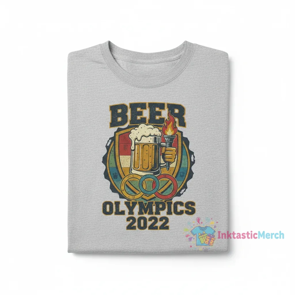 Celebrate the Beer Olympics 2022 with this commemorative event t-shirt, designed for comfort and style. Crafted from 100% ring-spun cotton, this high-quality tee offers exceptional softness and breathability, ensuring it will be a favorite for many seasons. Discover more at inktasticmerch.com.