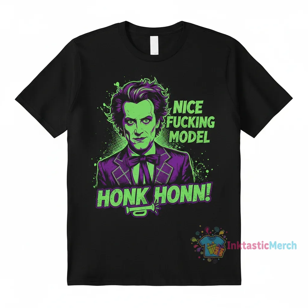 Beetlejuice Nice Fucking Model Honk Honk Shirt. This design is a playful nod to the iconic characters and unforgettable moments that have shaped our imaginations. It’s for those who appreciate the quirky, the unconventional, and the enduring magic of cinematic brilliance. We wanted to capture that electric feeling of seeing something so unique and memorable, something that makes you smile and think, ‘Wow, that’s awesome!’ This shirt is a wearable piece of that artistic spirit, designed to spark conversations and bring a touch of playful rebellion to your everyday style. It’s a tribute to the art that dares to be different.