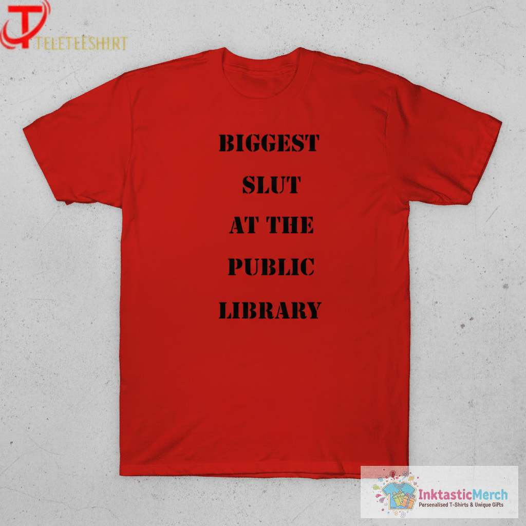 Make a bold statement and embrace your playful side with the Biggest Slut At The Public Library T-Shirt from InktasticMerch. Crafted with care, this shirt combines eye-catching design with ultimate comfort, making it a must-have addition to your wardrobe and a wearable piece of art that lets you express your unique sense of humor and individuality.