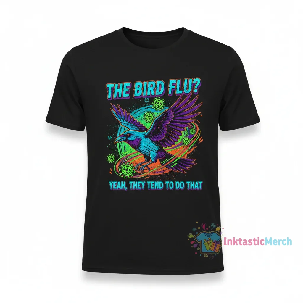 - Unique and humorous “Bird Flu Yeah They Tend To Do That” graphic design.