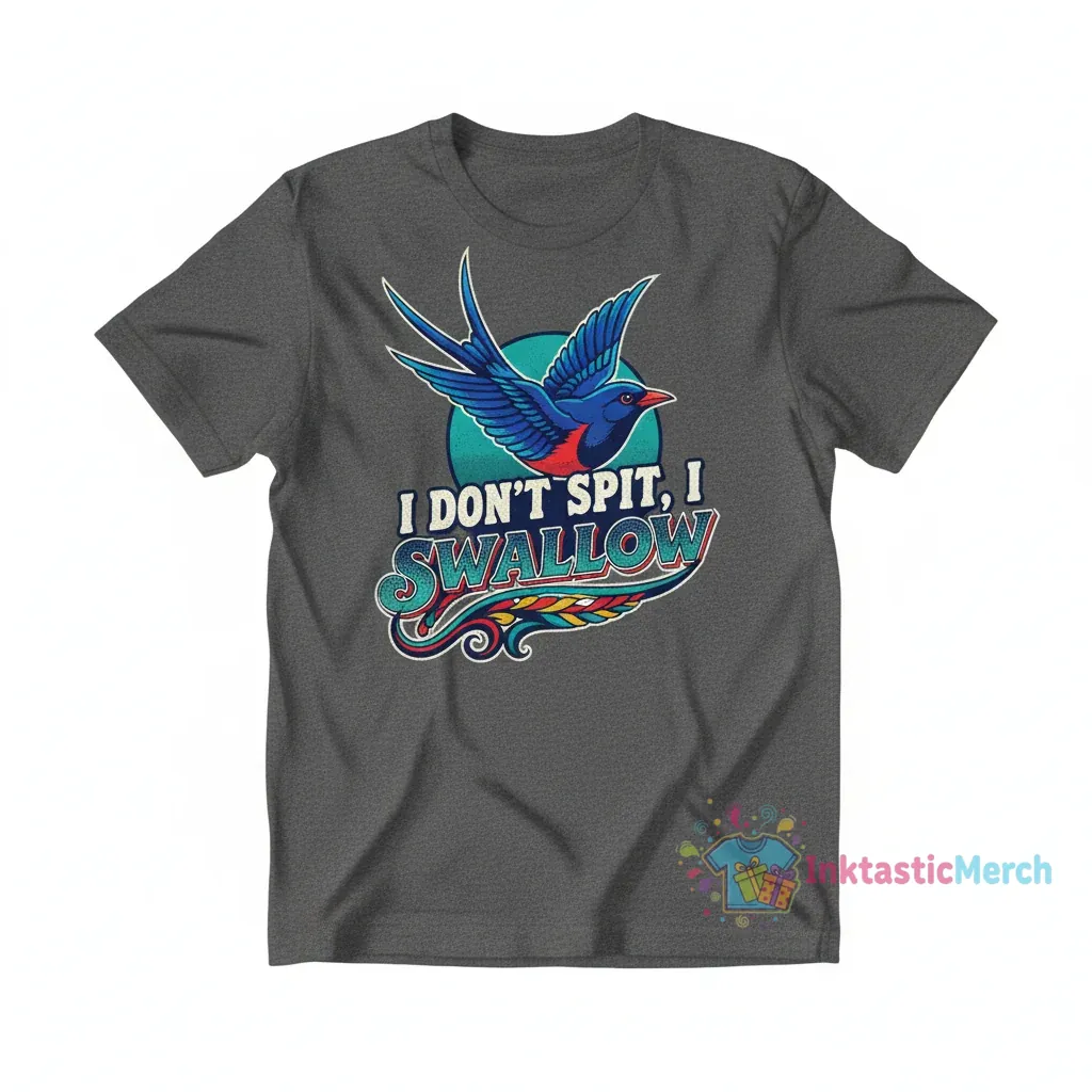 Embrace a bold and unapologetic attitude with the Blue Magpie ‘I Don’t Spit I Swallow’ tee from InktasticMerch. Crafted from premium, ultra-soft fabric for superior comfort and featuring a durable, minimalist design, this tee is perfect for your curated streetwear collection. Experience effortless cool and a confident statement with every wear.