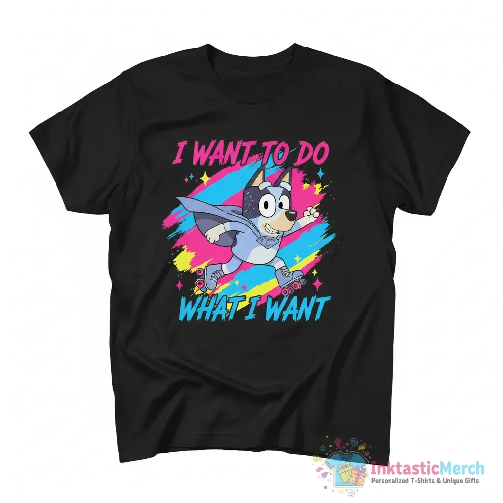 Embrace your inner Muffin with the Bluey “I Want To Do What I Want” Shirt, crafted from ultra-soft, premium fabric for unparalleled comfort. This durable tee, featuring a vibrant, long-lasting print, offers a classic unisex fit perfect for fans of all ages. Discover quality apparel from InktasticMerch, designed for lasting wear and everyday adventures.