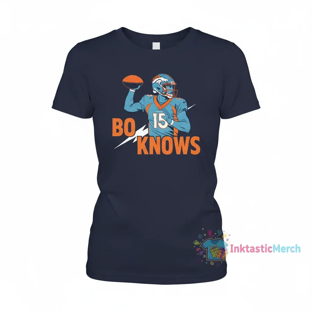 Show your love for Bo Nix and the Denver Broncos with this exclusive ‘Bo Knows’ parody t-shirt, designed for unparalleled quality and durability. Crafted from premium, pre-shrunk 100% cotton with vibrant, eco-friendly inks that resist fading, this tee ensures a consistently perfect fit and a design that stays sharp. Discover more stylish fan apparel from InktasticMerch, where laughter and comfort meet bold spirit.