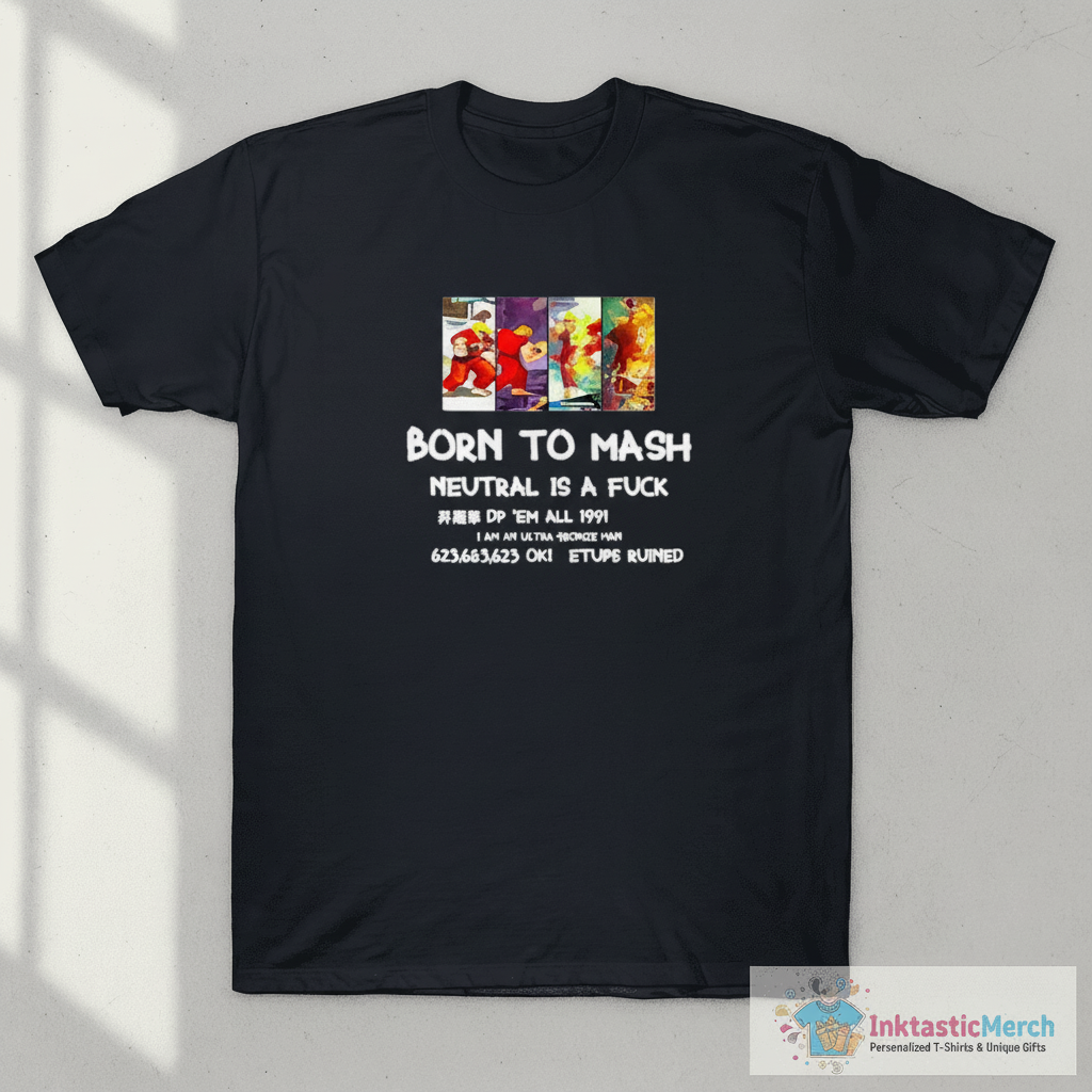 Bring your style to life with the Born To Mash Neutral Is A Fuck T-Shirt Dp Em All 1991 I Am An Ultra Bronze Man Street Fighter Ken today!