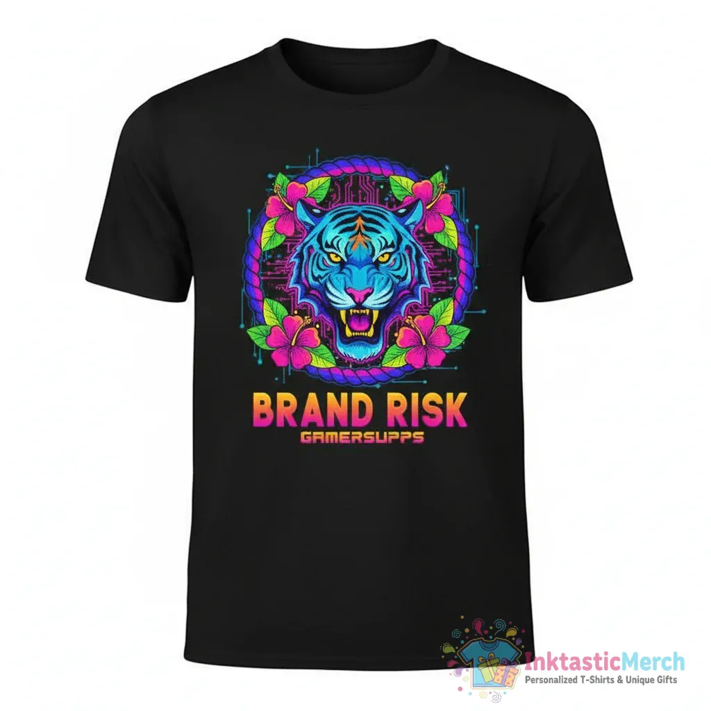 Level up your wardrobe with the Brand Risk Gamersupps Tiger and Flowers Shirt, crafted for both style and exceptional comfort from incredibly soft, high-grade fabric. This premium tee showcases a striking, durable print of a fierce tiger intertwined with beautiful flowers, making it a standout piece for any gamer or streetwear enthusiast from inktasticmerch.com.
