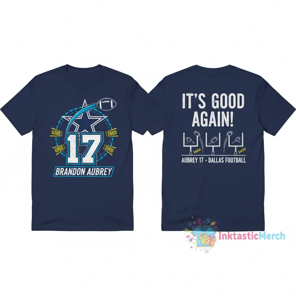 Show your unwavering support for the Dallas Cowboys and celebrate Brandon Aubrey with the ‘It’s Good Again’ Two-Sided T-Shirt. This shirt is meticulously crafted from premium, pre-shrunk cotton for lasting comfort and shape retention, featuring vibrant, eco-friendly inks that resist fading. Discover more fan apparel and quality products at inktasticmerch.com.