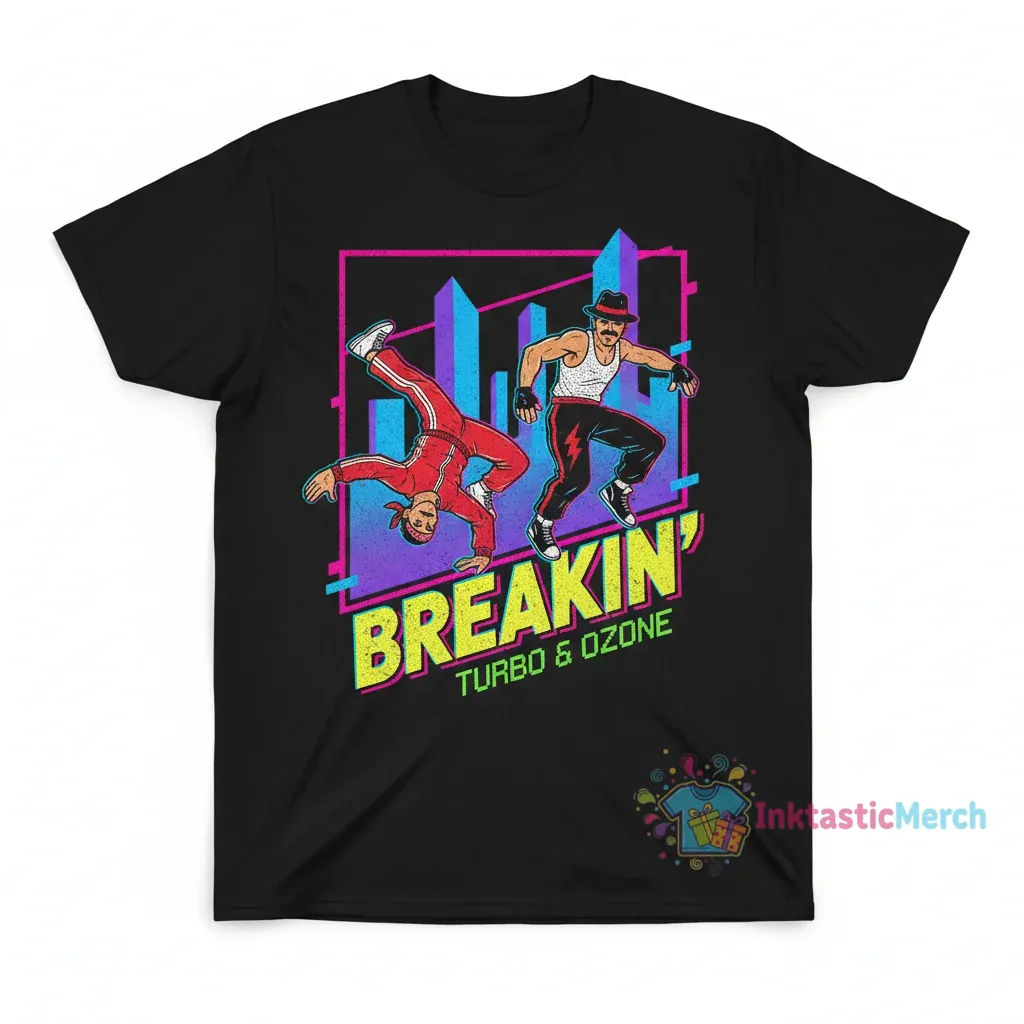 Experience nostalgia with this premium Breakin Turbo and Ozone 80s Movie T-Shirt, crafted from 100% ring-spun cotton for exceptional softness and breathability. This tee offers a modern retail fit and durable construction, ensuring it will be a favorite for years, reflecting the quality you expect from <a href="inktasticmerch.com“>inktasticmerch.com.