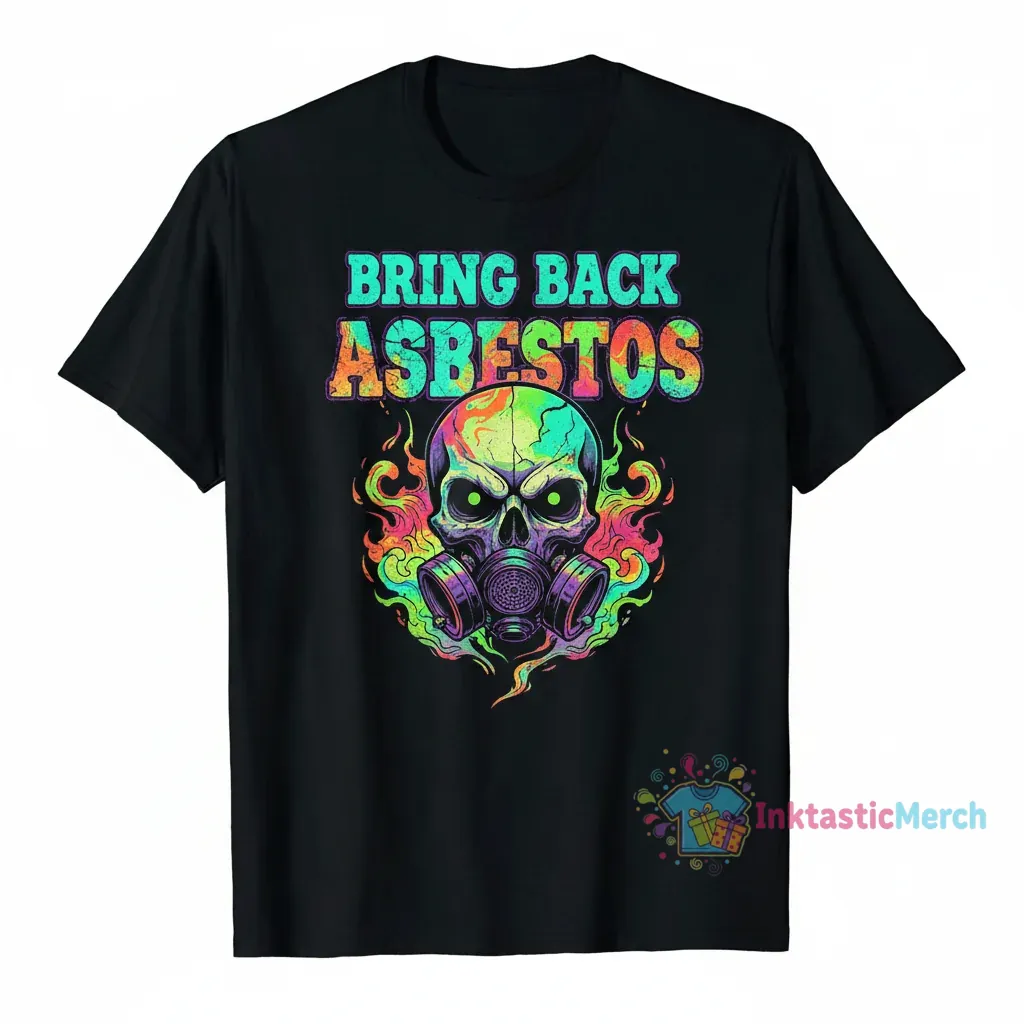 This bold graphic proclaims “Bring Back Asbestos” with stylized, retro-inspired typography, offering a satirical and thought-provoking statement piece perfect for those who appreciate edgy humor. Crafted from a premium, soft cotton blend, this t-shirt ensures ultimate comfort and breathability for all-day wear, embodying wearable creativity from inktasticmerch.com.