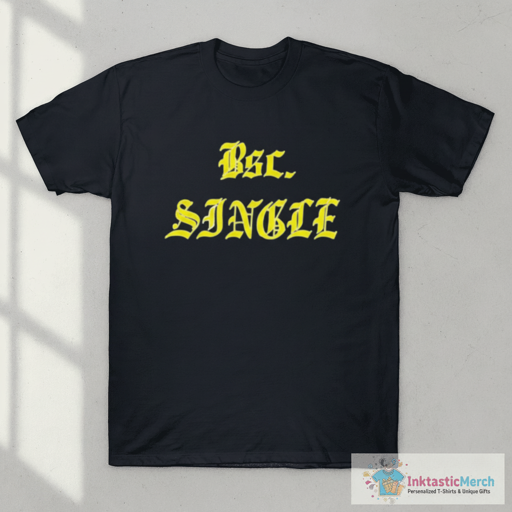 Celebrate your independence with a smile in the hilarious BSc. SINGLE – Funny Bachelor of Science Degree Parody T-Shirt from InktasticMerch. Crafted for exceptional comfort and style, this tee features a unique and witty design printed on incredibly soft, high-quality fabric that ensures a lasting, durable wear. Its relaxed unisex fit makes it a perfect conversation starter for anyone who appreciates clever apparel and embraces single life with a good laugh.