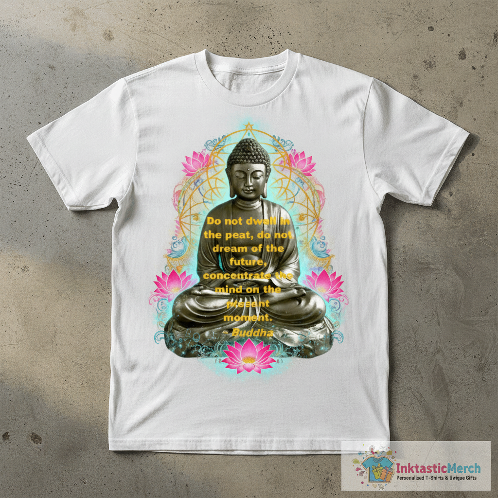 Bring your style to life with the Buddha – Do Not Dwell in the Past T-Shirt today!