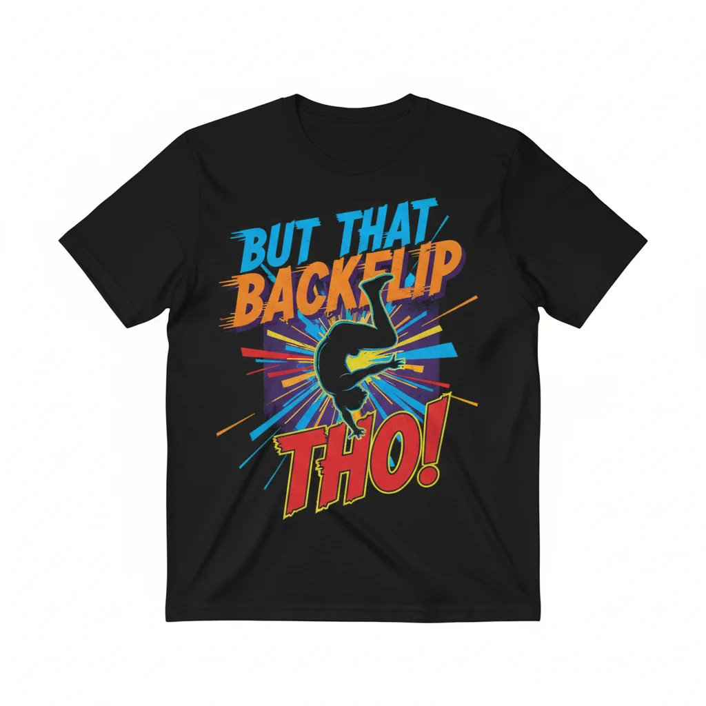 Tired of t-shirts that lose their charm after a few washes? The But That Backflip THO Essential T-Shirt from InktasticMerch is engineered to stand the test of time, keeping its vibrant personality and perfect shape, wash after wash. Crafted from a high-quality, pre-shrunk cotton blend with vibrant, eco-friendly inks that resist fading, this tee offers unparalleled comfort and lasting style.