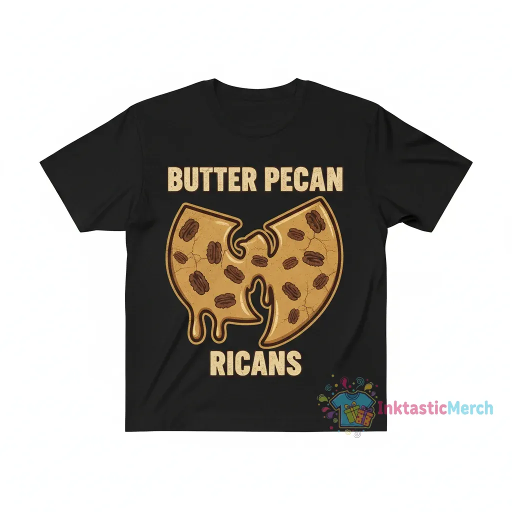 Show off your love for hip-hop and delicious treats with this unique Butter Pecan Ricans Wu-Tang shirt from inktasticmerch.com. Made from a super-soft, premium cotton blend, this tee offers all-day comfort with a durable print designed to last wash after wash. Its flattering unisex fit makes it a versatile and cool addition to any collection.