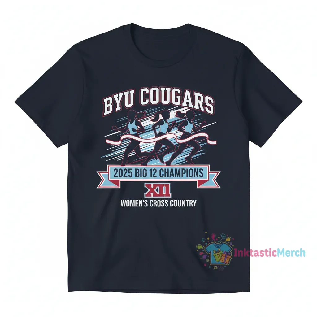 Celebrate the BYU Cougars’ incredible 2025 Big 12 Women’s Cross Country Championship victory with this commemorative t-shirt! Made from ultra-soft, breathable fabric and constructed with durable materials, this shirt offers premium comfort and lasting quality. Showcase your team spirit with the unique championship design, perfect for connecting with fellow fans and reliving the glory, all available at inktasticmerch.com.