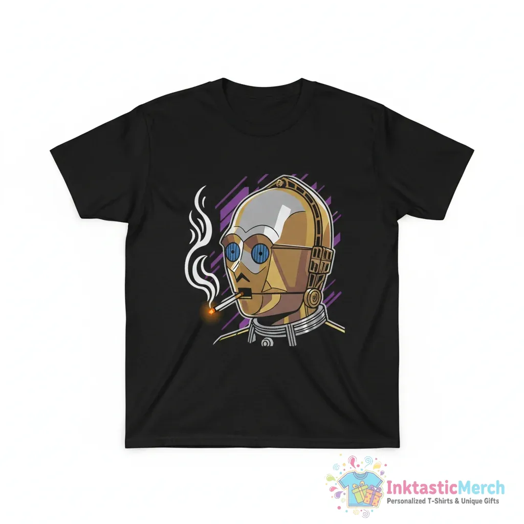 This C3po smoking Essential T-Shirt is perfect for casual outings, movie nights, comic conventions, or just relaxing at home. It makes a fantastic gift for the Star Wars enthusiast in your life. Wear it to express your fandom with a bit of humor and undeniable style. It’s ideal for anyone who appreciates cool, unique graphic tees that offer both comfort and a statement.