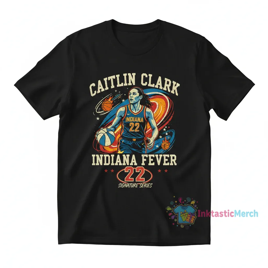 Celebrate the iconic Caitlin Clark with this premium 100% ring-spun cotton vintage t-shirt, commemorating her time as the #22 Indiana Fever WNBA player. Offering exceptional softness and breathability, this tee is designed for true fans to show their support for one of the most exciting players in the league. Discover quality apparel at inktasticmerch.com.