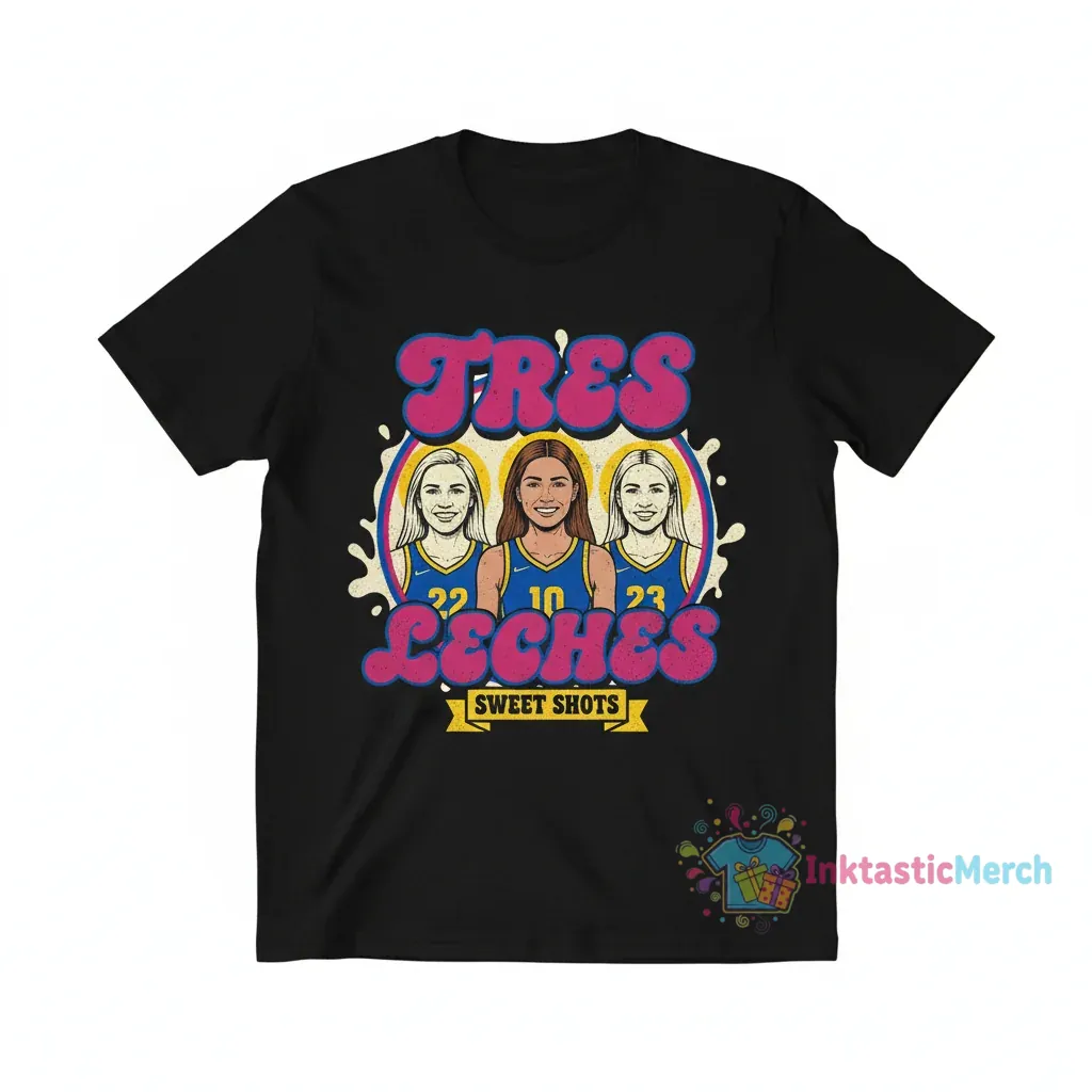 Show your support for Caitlin Clark, Lexie Hull, and Sophie Cunningham with this “Tres Leches” nickname t-shirt, a high-quality graphic tee designed for maximum comfort and style. Crafted from 100% ring-spun cotton, this shirt offers a softer texture and a more substantial feel, ensuring lasting comfort and a better fit thanks to its side-seamed construction and shoulder-to-shoulder taping. Discover more from InktasticMerch, where iconic imagery meets everyday wearability.