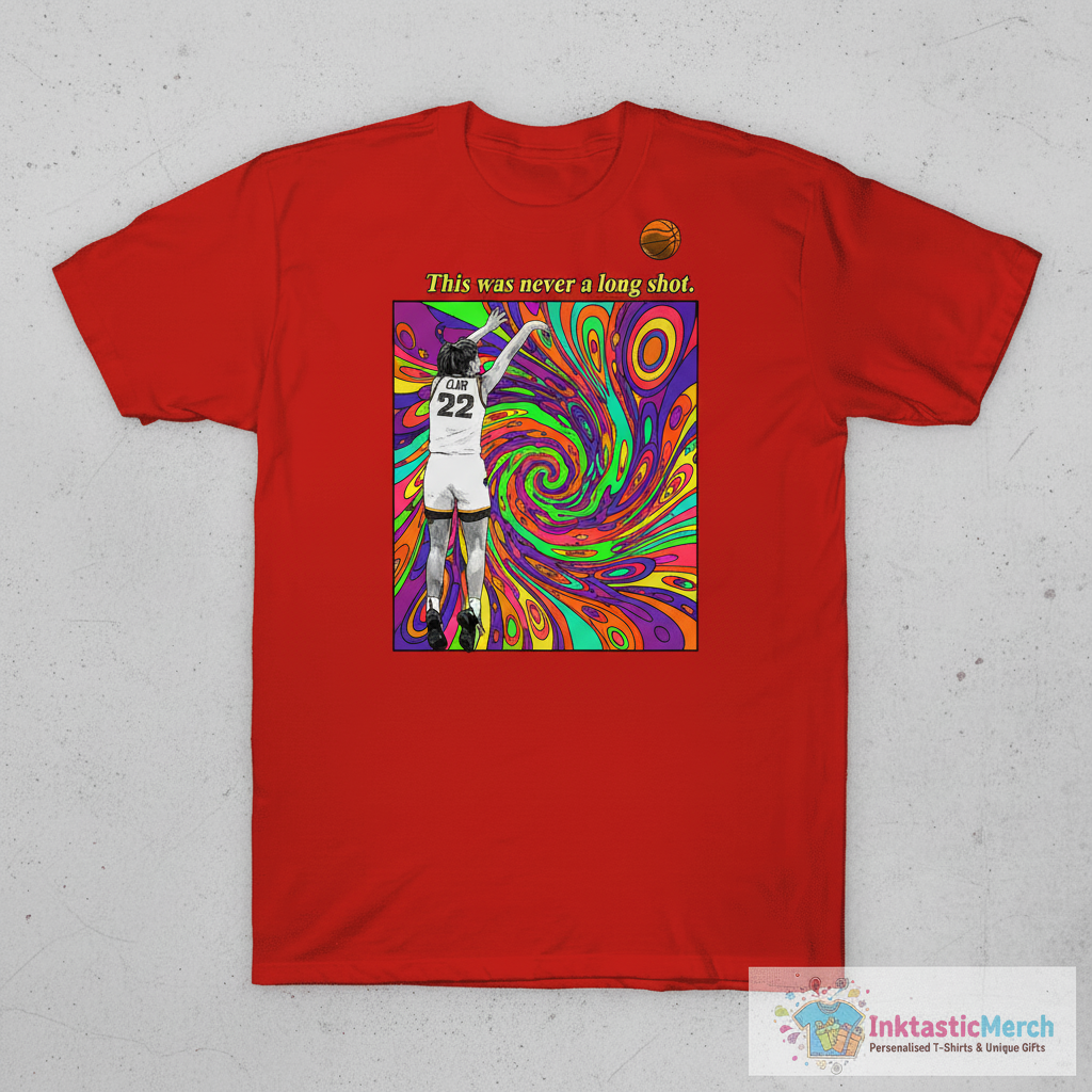 Experience the perfect blend of comfort and style with this premium T-shirt. Crafted from incredibly soft, high-quality fabric, it feels amazing against your skin. The bold “This Was Never A Long Shot” graphic is a direct nod to Caitlin Clark’s impressive career and fearless approach to the game. Its versatile unisex fit ensures it looks great on everyone, making it an easy addition to any wardrobe. This shirt isn’t just apparel; it’s a statement piece that reflects your passion for basketball and admiration for an exceptional athlete.
